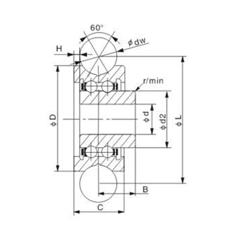| dw | d | D | C | B | L | D2 | H | CW | Bos | (KG) | |